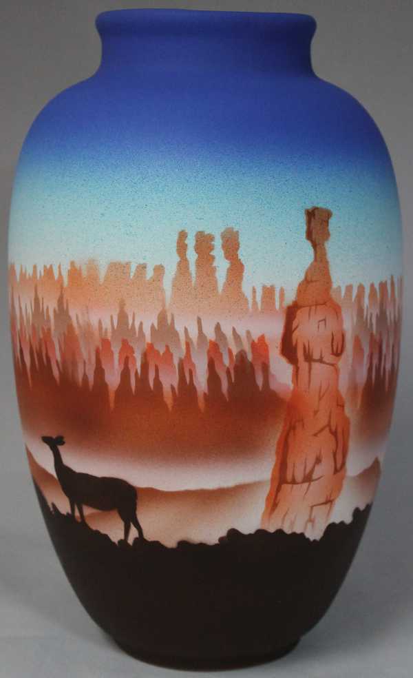 Bryce Canyon is one of Utah's 'Mighty Five' national parks. The pottery features the iconic Thor's Hammer hudu.