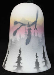 Our Native American artists bring you the SACRED MESSENGER. Soft shades of a pastel sunset provide the background for this majestic bird, the Bald Eagle, soaring among the high jagged peaks. Legends tell us that saying a prayer over an eagle feather and hanging it in the breeze invokes the eagle's help in delivering the prayer to heaven.