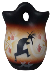 Stove Vision is a modern rendition of Kokopelli, the flute player, over a background of ancient image replicas. The hunchbacked flute player is a deity rooted deep in Anasazi traditions. His mythology is still present in the traditions of many pueblo peoples. To the Hopi, he is Kokopelli. He is influential in fertility and abundance, whether it be the hunt, the fields or human reproduction. This figure is representative of the symbols used by the Anasazi (The Ancient Ones).