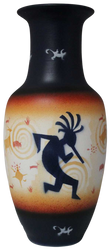 Stove Vision is a modern rendition of Kokopelli, the flute player, over a background of ancient image replicas. The hunchbacked flute player is a deity rooted deep in Anasazi traditions. His mythology is still present in the traditions of many pueblo peoples. To the Hopi, he is Kokopelli. He is influential in fertility and abundance, whether it be the hunt, the fields or human reproduction. This figure is representative of the symbols used by the Anasazi (The Ancient Ones).