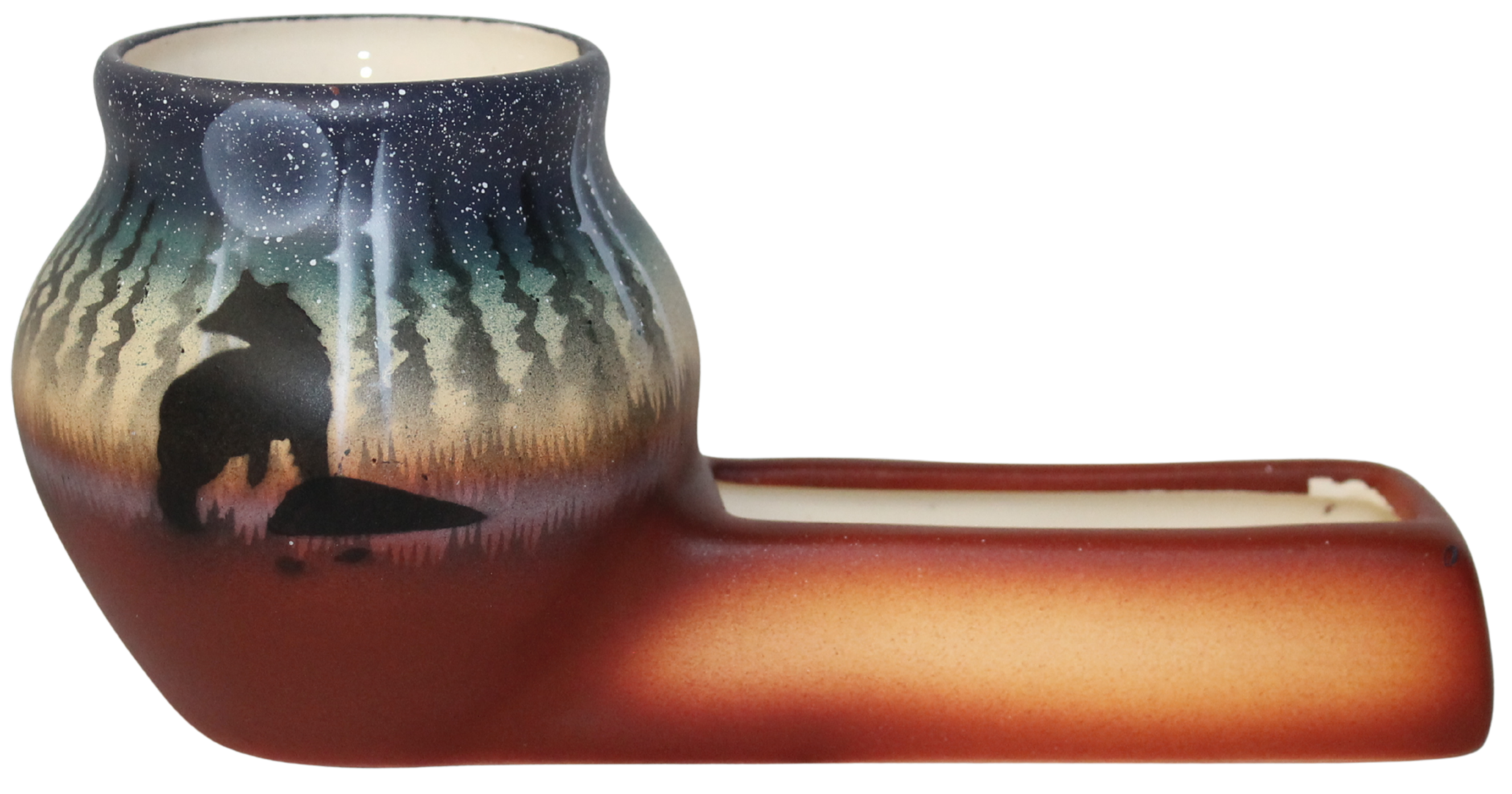 Enjoy the call of the wild. Woodland Shadows pottery featuring the bear in a nightime forest scene.